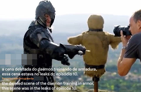다에몬이 갑옷을 입고 훈련하는 삭제된 장면, 이 장면은 에피소드 10의 유출에 있었다.