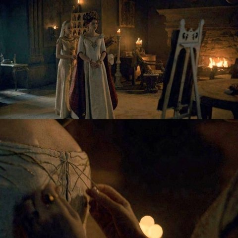바엘라와 라에나(Rhaena)는 숨어서 라에나(Laena)의 충격적인 출산을 지켜보고 있지만,