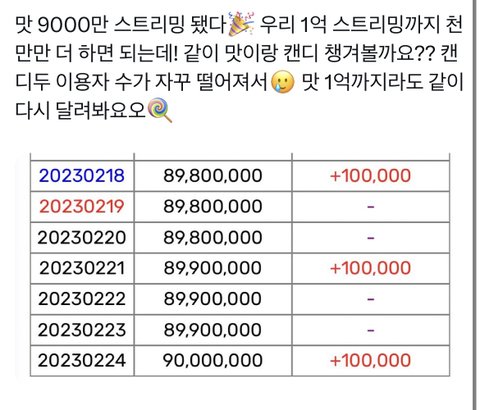 1. 맛 1억 스트리밍 지금 9000만이여서 1000만만 더 들으면 1억 달성!!