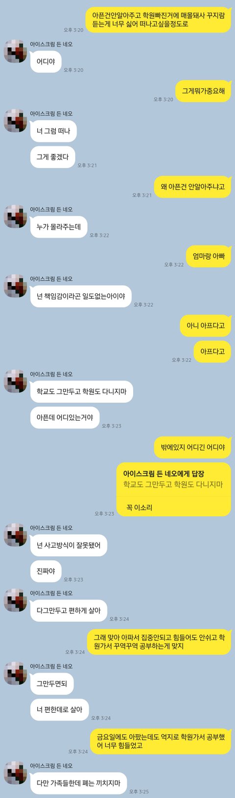 나 아파서 학원 빠졌는데 이런 소리 듣는게 맞음?