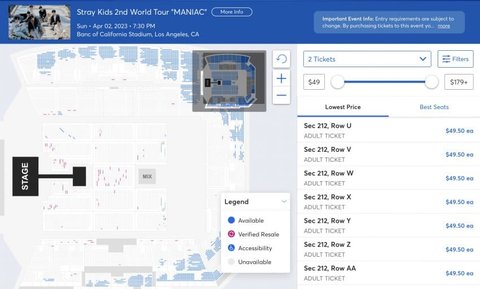 스키즈 미국콘 올매진이고 플로어 대부분 40만원인데 오픈하면 오픈컷이라 암표상 500만원까지 올라감. 니가 지금 첨부한 사진은 올매진이라 스키즈가 가장 마지막에 추가한 앙앙콘 추가 날짜라서 가장 윗자리만 남아있는거임. 텅텅콘 ㅇㅈㄹ 지금 티켓없어서 이번 미국공연 공연하나당 70만원씩 주고 가는데 텅텅콘 이지랄 하고 있네. 혹시 니본진은 어디야? 니본진두 해외 스태디엄 막층 막끝 20만원이어도 매진된적은 있어?