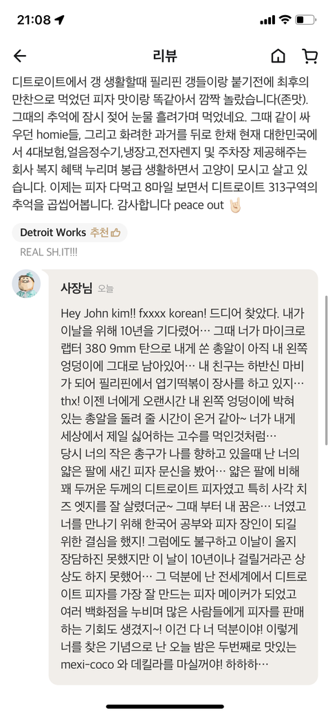 제가 자주 이용하던 피잣집인데~리뷰와 사장님 댓글의 캐미가 너무 재밌어서~ 올려봅니닷!