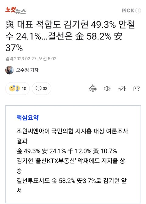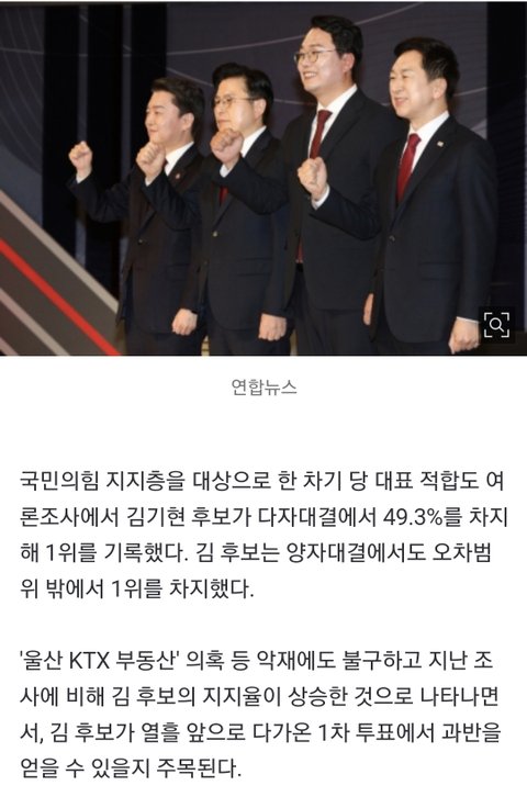 김기현 '울산KTX부동산' 악재에도 지지율 상승