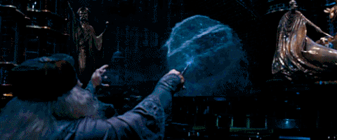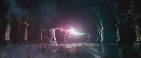 해리포터와 불사조 기사단에서 등장하는 덤블도어와 볼드모트의 결투 장면