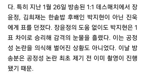 그리고 같은 소속사 논란 최초 나기 전에 데스매치 녹화한건데도 장윤정은 진욱을 뽑았음.