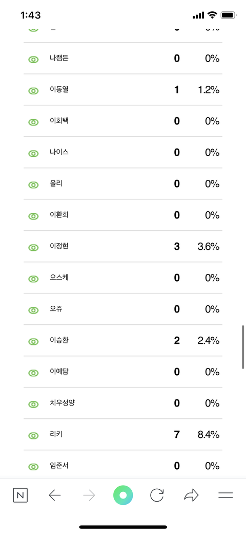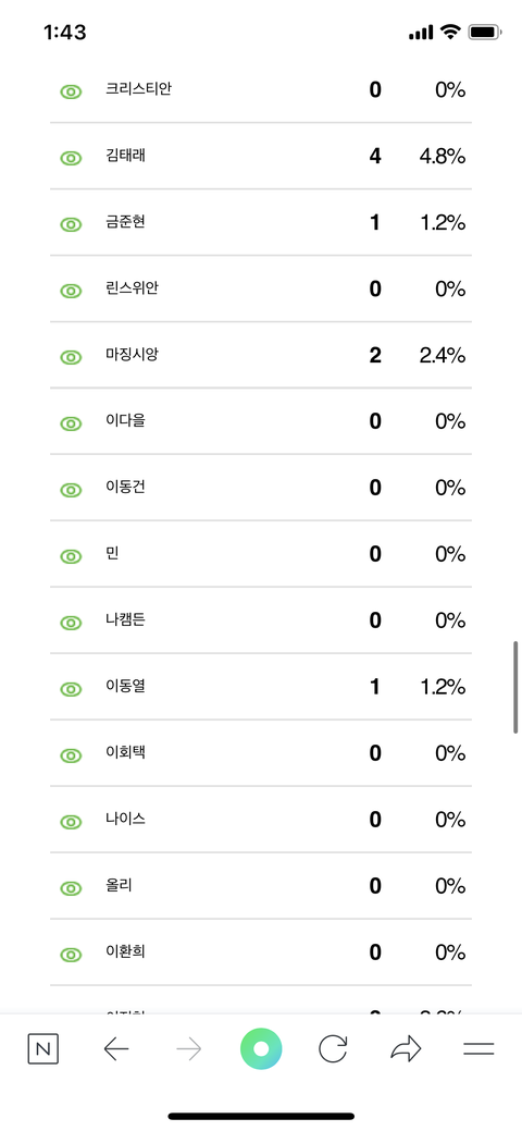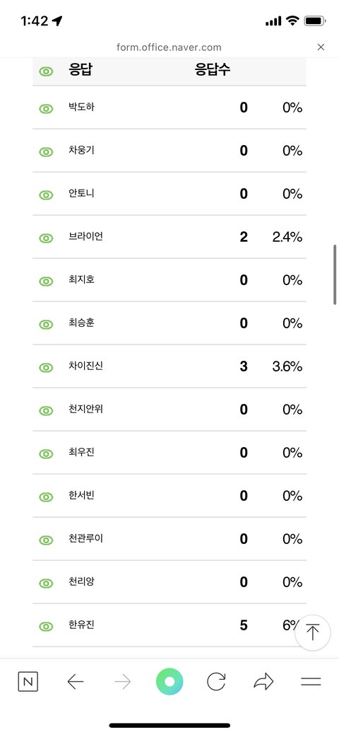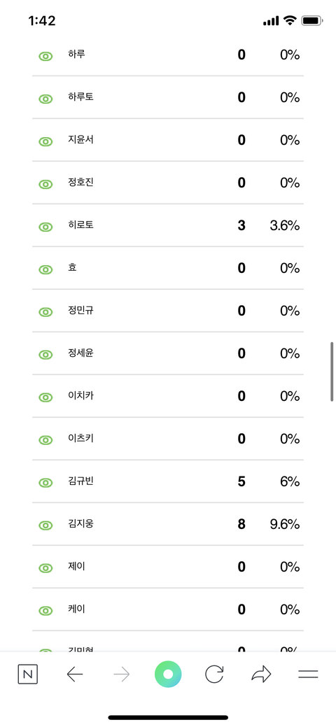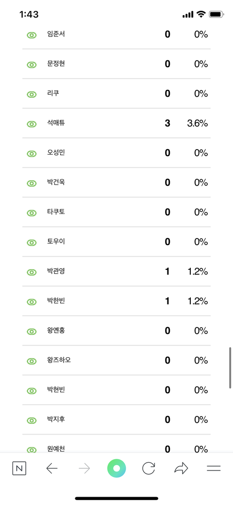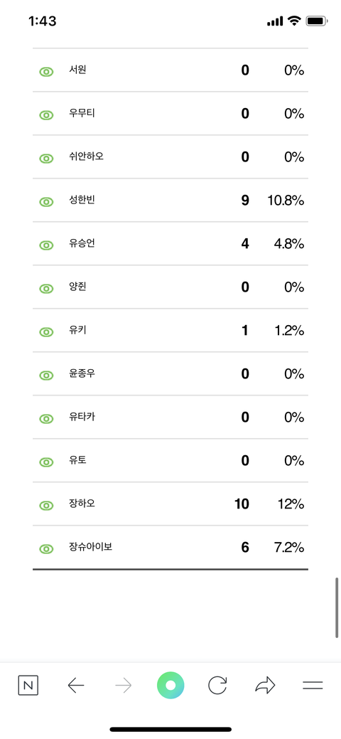 대충 보니깐 장하오 성한빈 김지웅 리키 장슈아이보 김규빈 한유진 이런 순인듯