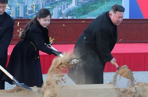 26일 조선중앙통신에 따르면 김 위원장은 전날 평양 서포지구 새 거리 건설 착공식에 참석해 첫 삽을 뜨고 연설을 했다. 착공식에는 김 위원장의 딸 김주애도 참석했다.
