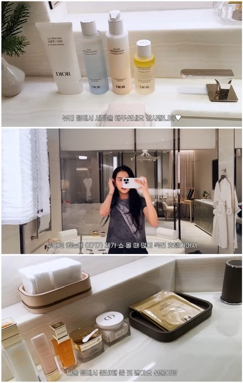 디올쇼 갈때마다 호텔 저렇게 꾸며준대.. 선물상자 몇개나 있고 풍선이나 꽃,장식들로 꾸미고 화장실에 디올뷰티 제품 쫙 세팅하고... 대박임