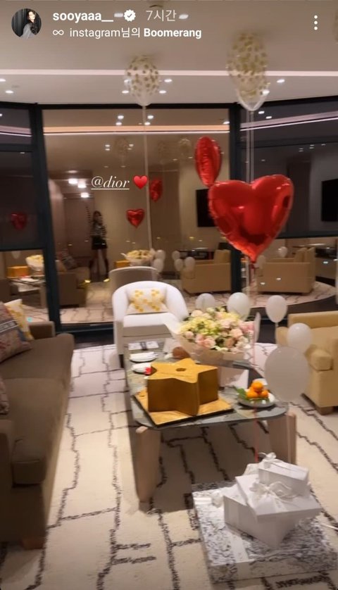 블핑 지수 진짜 부럽다 보통 꽃하고 카드하고 작은 선물 몇개 놓던데 풍선에 케잌에 난리여 저러고 또 귀국할때도 디올 신상 엄청 주겠지