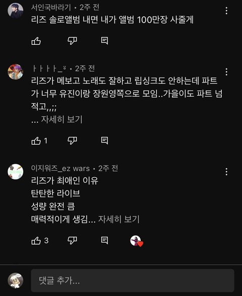 리즈 솔로앨범 내달라는 리즈 개인팬 잼들 진짜 조카 웃김 솔직히 개타쉽 ㅇㅈㄹ 할것도 없는게 스타쉽이랑 아이브 없었으면 리즈가 이렇게 뜰 수 있었을지도 의문인데 ㅋㅋ 단합력은 또 조카 좋아서 반대하면 우르르몰려와서 욕 하는데 답 없어보임