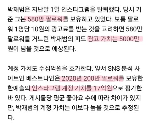 인스타 광고비 더 높게 받아먹으려고 사진한장 올리는데도 거만떨다가 골로간 연예인들 여럿 봐서 그런지 5200만을 미련없이 날려버린거 보니 뭔가 멋있다