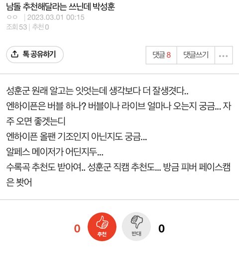 엔터에서 이 글 읽고 바로 성훈이 추천 댓 달아따…