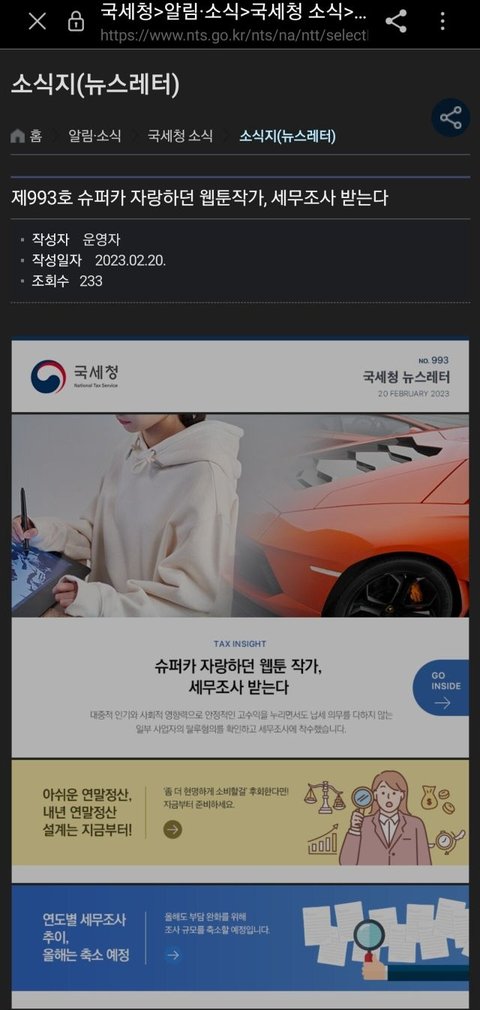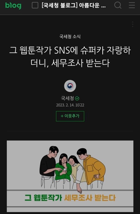 (현재는 수정되었으나 국세청 세종홍보과 디지털소통팀 관계자는 "수정한 것은 맞다"라며 "블로그 글은 배포한 보도자료와 바탕으로 작성되는 내용으로 톤을 맞추기 위해 변경한 것일 뿐"이라고 언론 인터뷰 하였습니다)