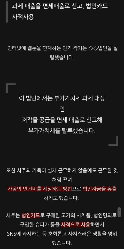 타는 차 소비하는 물건 명품 전부 법인카드 결제하셨다고 국세청이 말하는데... 정말 본인돈으로 사신게 맞다고 생각하시나요?