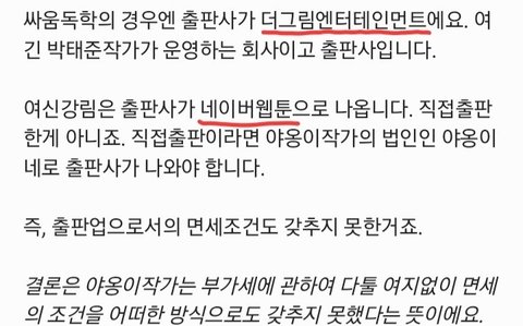 직장인과 세금 잘 내는 사람들만 억울한거죠^^;; 기껏 열심히 나라곳간 채우는데 누군가는 나라곳간 털어먹고있으니(우리가 내는 세금으로 나라가 운영되기때문에 나라에서 제공되는 모든 편의는 세금이라고 말할 수 있죠... 그 웹툰작가 자녀가 다니는 학교와 병원 조차도 세금으로 이루어졌다고 보시면 될듯합니다)