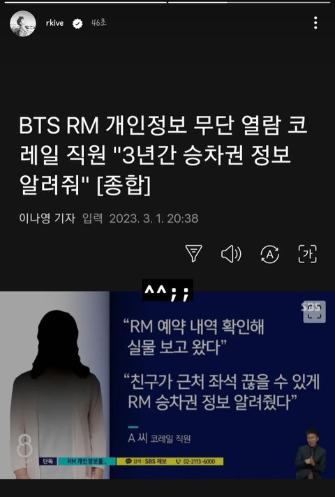 2019년부터 3년동안 18번을 개인정보 열람을 했다고 함 직원이 자기가 직접 실물 보고 왔다며 친구가 근처 좌석을 끊을수 있게 승차권 정보 알려줬다고 주변에 말하고 다녀서 꼬리가 잡혔나봄. 저 직원이 티비 출연해서 유명해진 같은 코레일 남자 직원 정보도 조회를 했다고 나오는대 코레일은 내부 감사를 통해 알엠의 개인정보를 열람한 건 맞고 외부 유출은 아직 파악이 되지 않는다며 그 직원한텐 정직처분 권고만 했다고 나옴. 나름 공기업인 곳에서 직원이 고객이든 아님 같은 회사 동료든 남의 개인정보를 쉽게 쉽게 열람을 하는데 그 누가 믿고 타냐고
