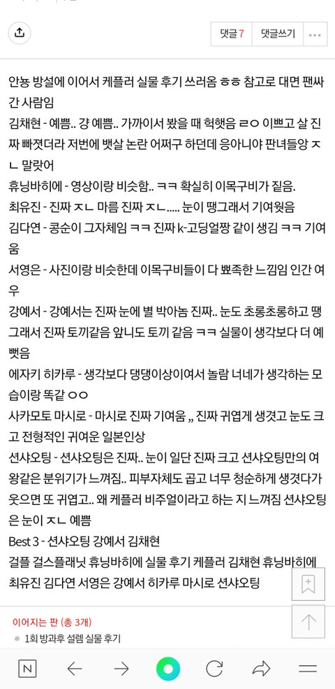 지젤 글만 보였다하면 꾸득꾸득 악플쓰고가는애들 꼭 있는듯 ㅋㅋ 남 칭찬받는꼴은 죽어도 못보는 도태녀들 ㅠㅠ