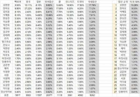 팬들이 직접 통계낸 보플1픽 순위임!!