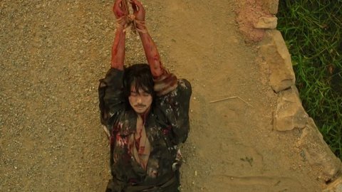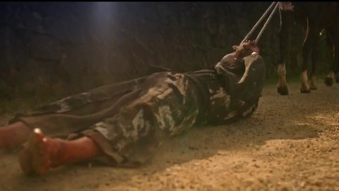 야쿠자는 동매의 시신을 말에 매달아 끌고 다닌다