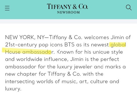 방탄 지민 새로운 티파니앤코의 글로벌 하우스 앰버서더