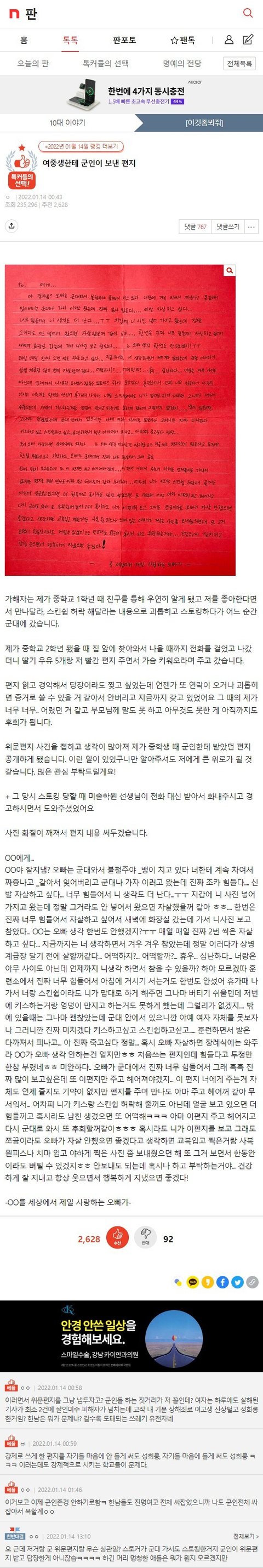 위문편지 때 글이 올라와서 이슈가 됐고 각종 남초 사이트, 렉카 유튜버(ㅃㄲ)가 팩트없이 선동하고 주작으로 박제하면서 글쓴이는 조롱, 싸불 당했었음