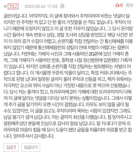 최근까지도 주작이라며 조롱하는 악플이 달렸음