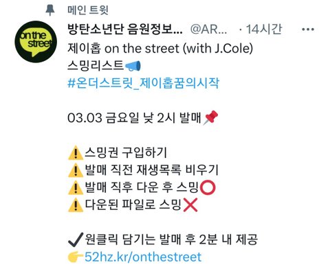 오늘 호비 싱글 화력 모아 상위권에 올려야 당장 다음 순번인 지미니 그 다음 이어질 다른 멤버들 앨범 발매 때마다 탄력 받아 좋은 결과로 이어질 게 틀림없거든