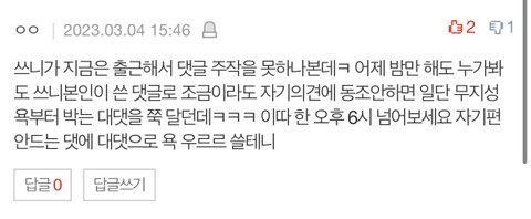 유독 한 사람이 글 올린 초반부터 찐따녜 뭐하녜 하면서 열등감이 듬뿍 담긴 댓글을 적던데 그 사람인가보군요.