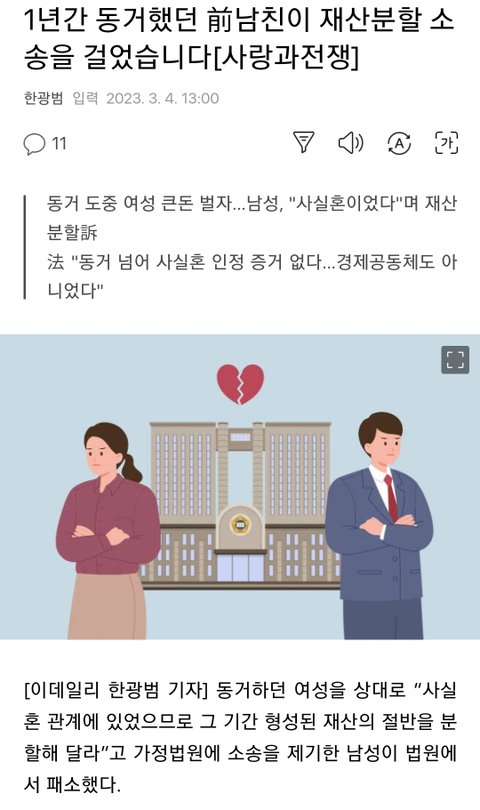 1년 동거해놓고 재산분할 요구한 방울뱀 기사