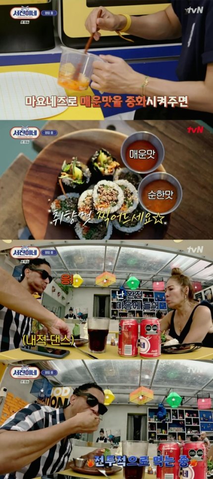 새로운 김밥 소스 개발에 열심 너무 매워ㅋㅋ 표정 귀여워