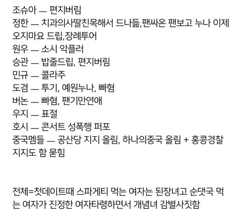 타팬들 이때다 싶어서 까고싶은거겠지 요즘 부석순 음원도 좋고 무대 반응이며 머글 반응 써클차트 무대는 본진들이나 타팬들까지 반응 좋으니 아무말 못하다가 앗싸 하나 잡았다 하고 팩트체크 안하고 그냥 눈막귀막하고 욕하는거지. 이런일은 도겸이 뿐만 아니라 타그룹분들이나 다른연예인분들에게도 많이 일어나는 듯. 무지성으로 욕하기. 다들 연예인 욕하기 전에 이때다 싶어서 이랬대 저랬대 물타서 힐난하지말고 일단 기다렸다가 팩트를 체크하길 바라. 나는 여기서 타그룹분들 타연예인분들 무지성으로 까이고 욕먹는것도 너무 안타까워.