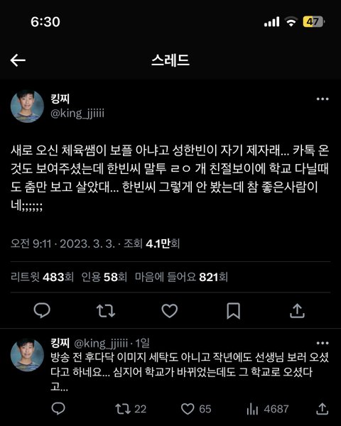 오..성한빈 미담 또 떴었네
