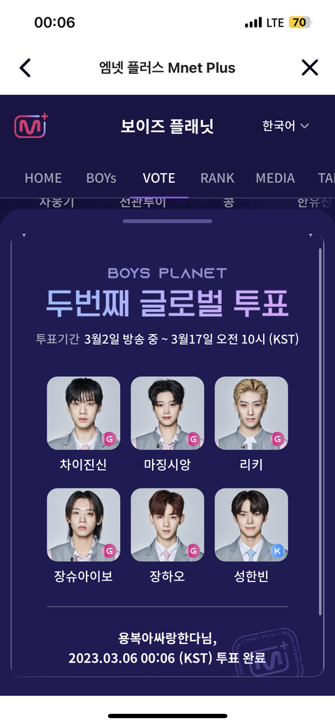 보이즈플래닛 장하오 마징시앙 장슈아이보 차이진신 존잘 투표 순위 중남 중국