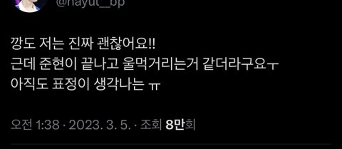 눈물 없다던데 울라고 했다는 글 많더라 맘아프네 왜 욕 먹냐 ㅠㅠ 저렇게라도 안하면 깡 기억에도 안 남고 다른 조원들도 나락 가는걸 복근티로 올린건데ㅠ
