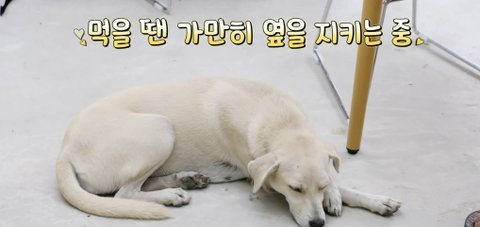 물론 강아지는 주인 식사할 때 가만히 엎드려있음