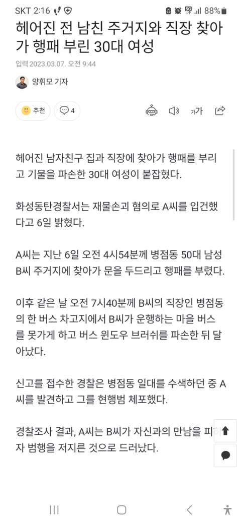 50대 남자가 헤어지자고 했다고 스토킹짓 하질않나
