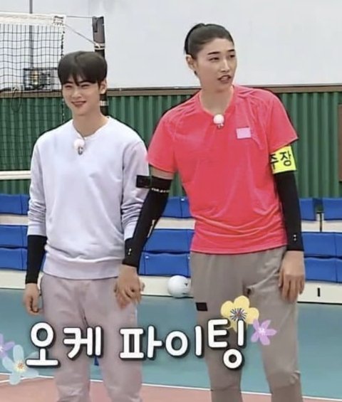 차은우 피지컬 자체도 쩐데.. 여자 배구 선수들 사이에 있으니 평범해보임 선수들 피지컬 진짜 쩐다..