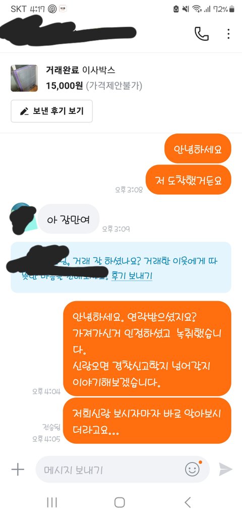 저랑 당근챗 하신분은 이상황 들으셨을텐데 사과한마디 없으시네요..