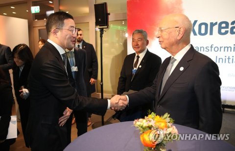 (사진2 설명) 클라우스 슈밥 WEF 회장과 악수하는 구광모 LG그룹 회장 <연합뉴스 자료사진>