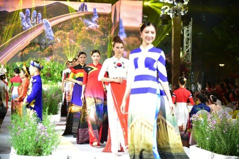 2023년 아오자이 축제에서 전 세계의 다양한 문화를 축하하는 아오자이 전시를 볼 수 있다