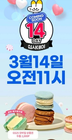 3월 14일 오전 11시에 선착순으로 마카롱 살 수 있는 gs25 모바일 상품권 주는데