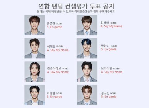 금준현 김태래 석매튜 박한빈 장슈아이보 브라이언 이정현 김규빈