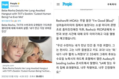 피플지 인텁 비비렉사 수빈 만남 언급함