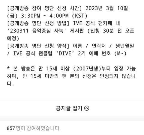 857명 신청ㅇㅇ 1기 가입한 사람 별로 없다고 말할땐 그렇게 안듣더니 공방 미달로 까던 사람들 뻘쭘해졌겠다 여돌 공방이 저정도면 팬덤 ㅈㄴ큰거 알지?