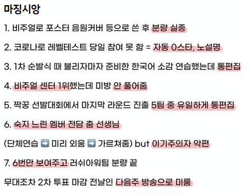 정작 방송에선 왜 쟤가 1위? 이런 느낌으로 편집함