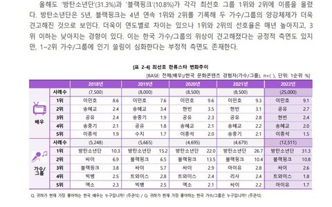 2023 해외한류실태조사 가수부문 전체 1위 BTS