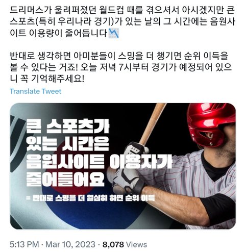올려보자!! 우리나라 야구경기 있대