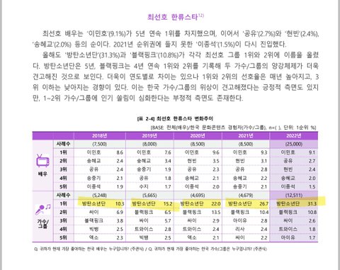 방탄 비중이 작년보다 더 올랐음ㅋㅋㅋㅋㅋㅋ