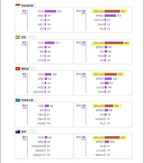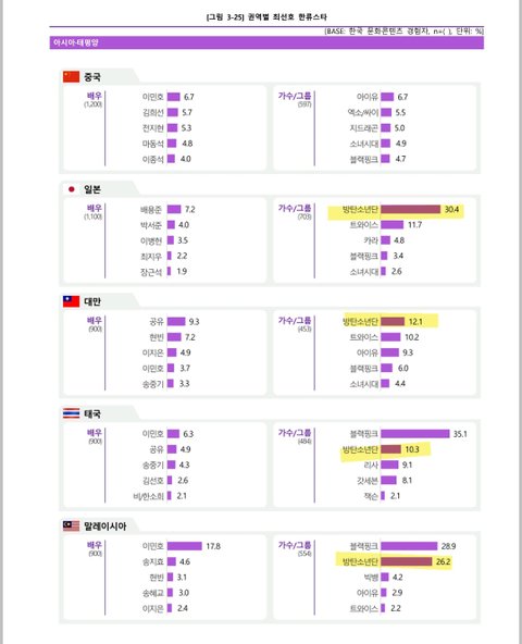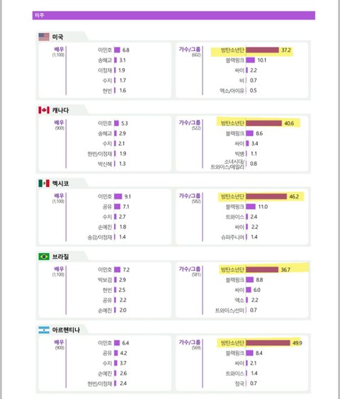2023 버전 한류실태조사 방탄 나라별 순위