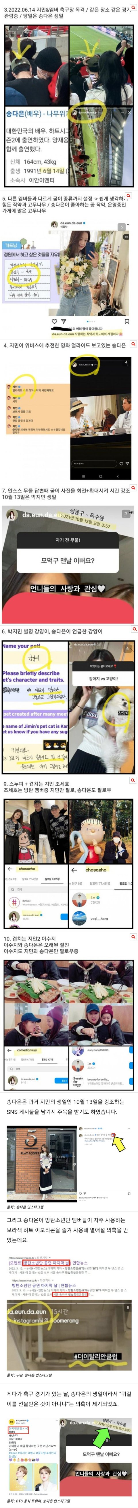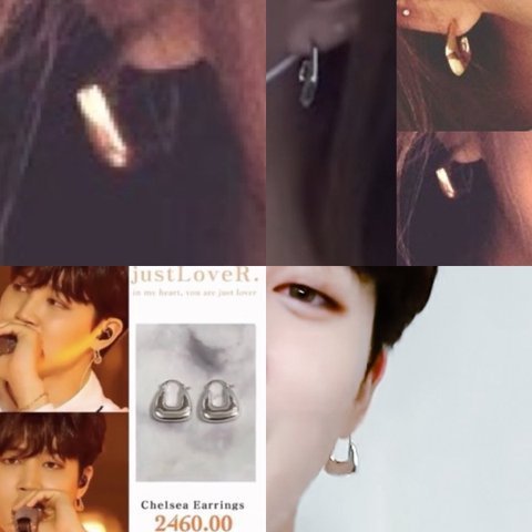 쓰갤련들 제대로 된 증거나 투샷도 없이 맨날 허접한 짜집기ㅋㅋㅋㅋㅋㅋ 악세사리로 엮는것도 지겨워 지민이 착용한건 전부 인스타에 올라온 협찬템인데다가 심지어 귀걸이 모양도 다름ㅋ
